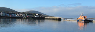 The RNLI lifeboat was in the harbor getting a repair fixed.